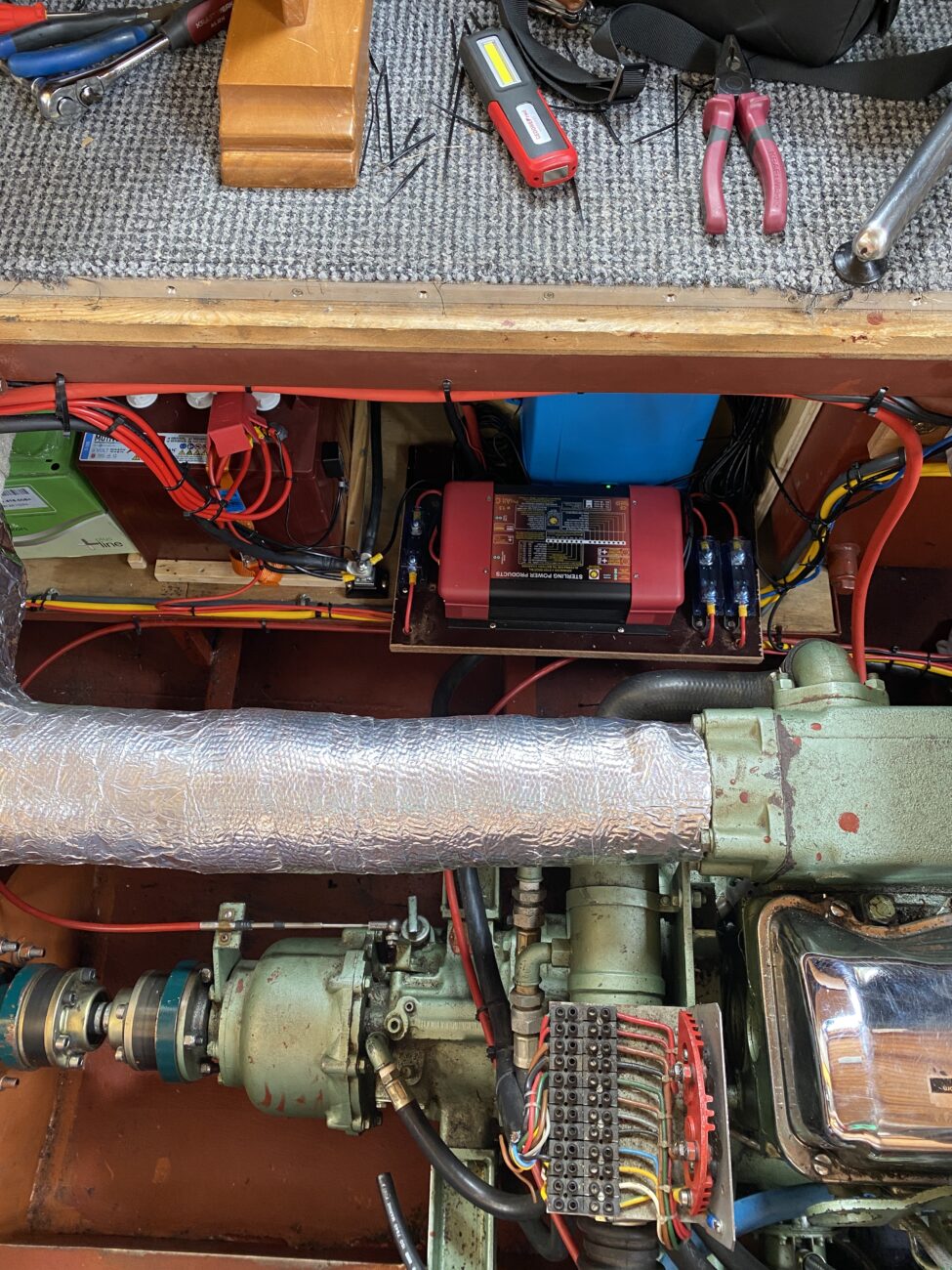 Und die ganze Elektronik, da muss auch noch etwas gehen. Beat opferte sogar seine Ferien, um uns zu helfen. Das Problem ist, dass hier alles so eng und alt ist. Das heisst stundenlang Geschäfte abklappern, bis man das richtige Teil gefunden hat, dann sich in den Rumpf quetschen und halb blind zu Montieren. Und wie kommt man wieder raus? Also diese Elektronikgeschichte war ein Riesending. Beat, tausend Dank!!!!