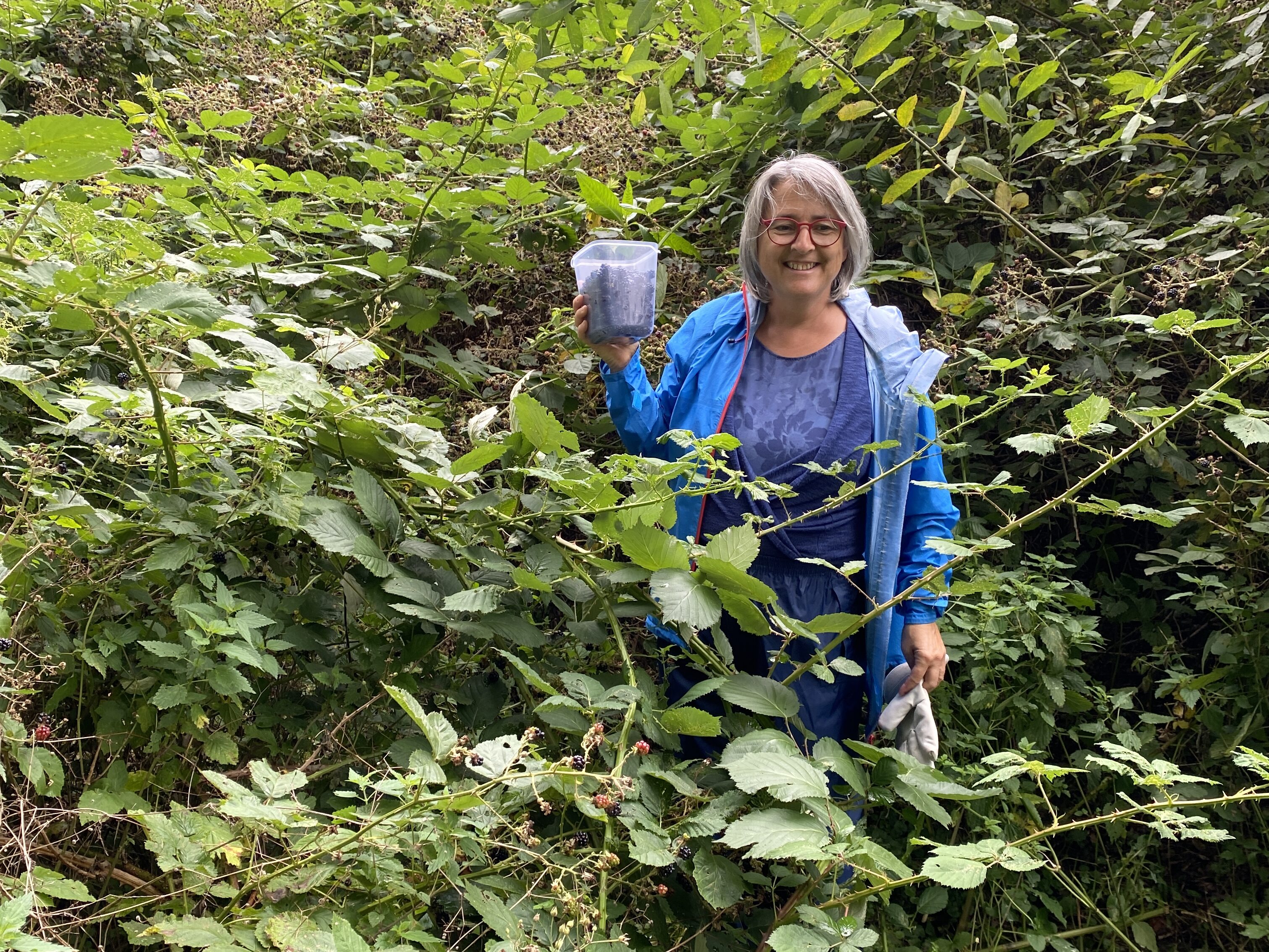 Frau in den Brombeergebüsch