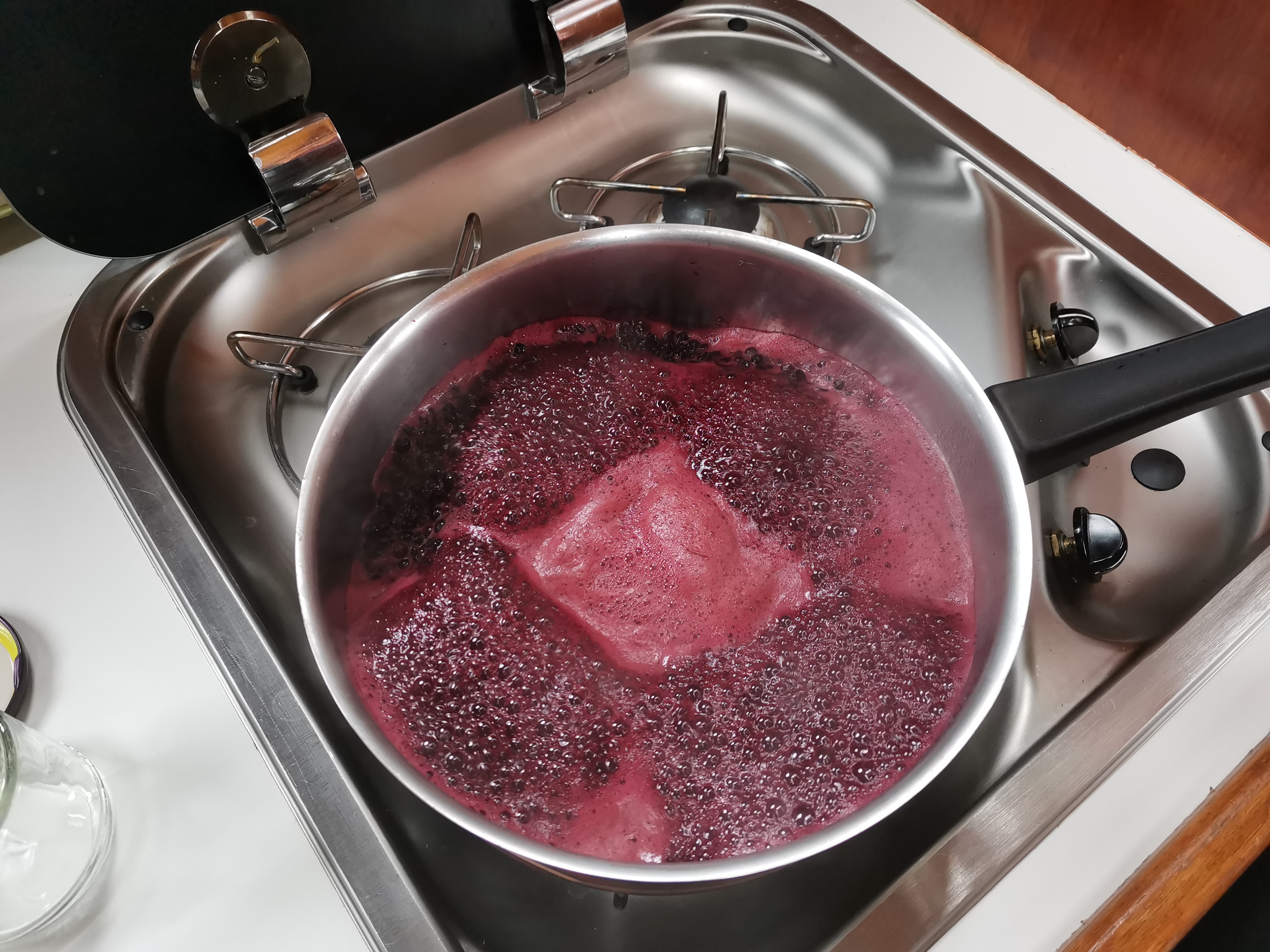 rote kochende flüssigkeit in Pfanne